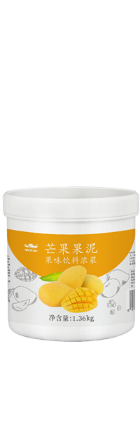 产品介绍:为水果的泥状流体形态,其主要是水果原汁、原果肉25%-40%含量调配而成。主要运用于冷热果汁、果奶、奶昔、冰沙、烘焙面包果馅、甜品。